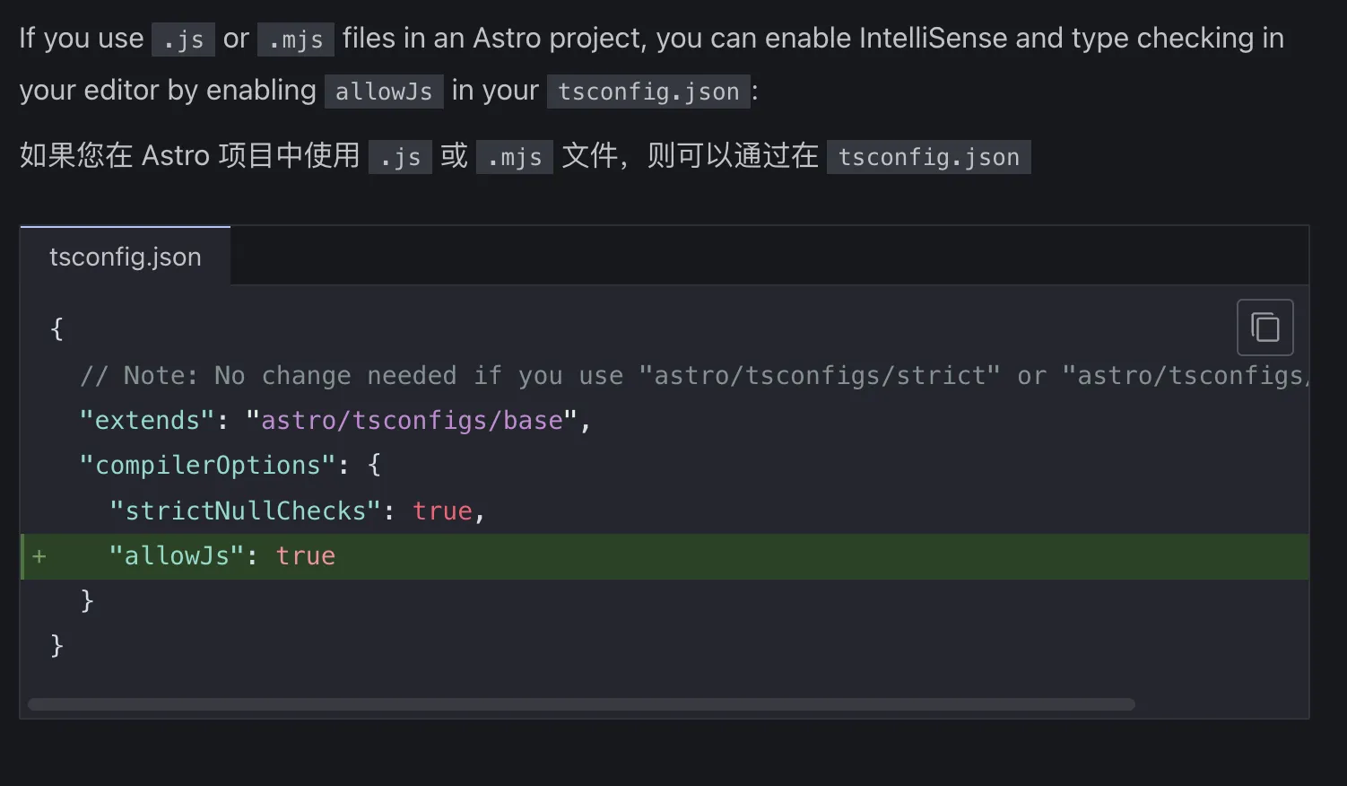 8、如果您尚未在 tsconfig.json 文件中扩展 Astro 的 strict 或 strictest 推荐 TypeScript 设置,则可能需要将 tsconfig.json 更新为启用 strictNullChecks 。