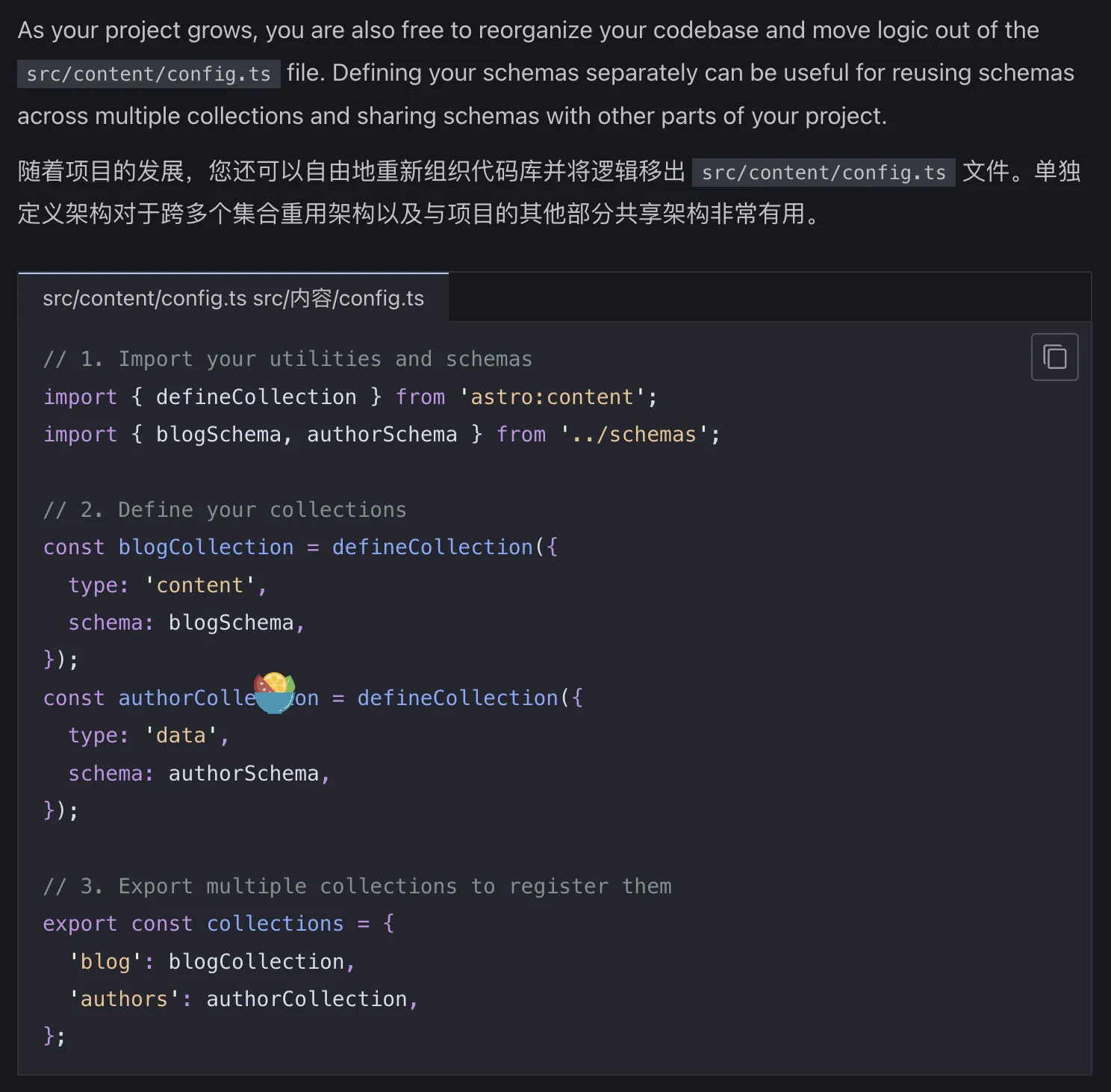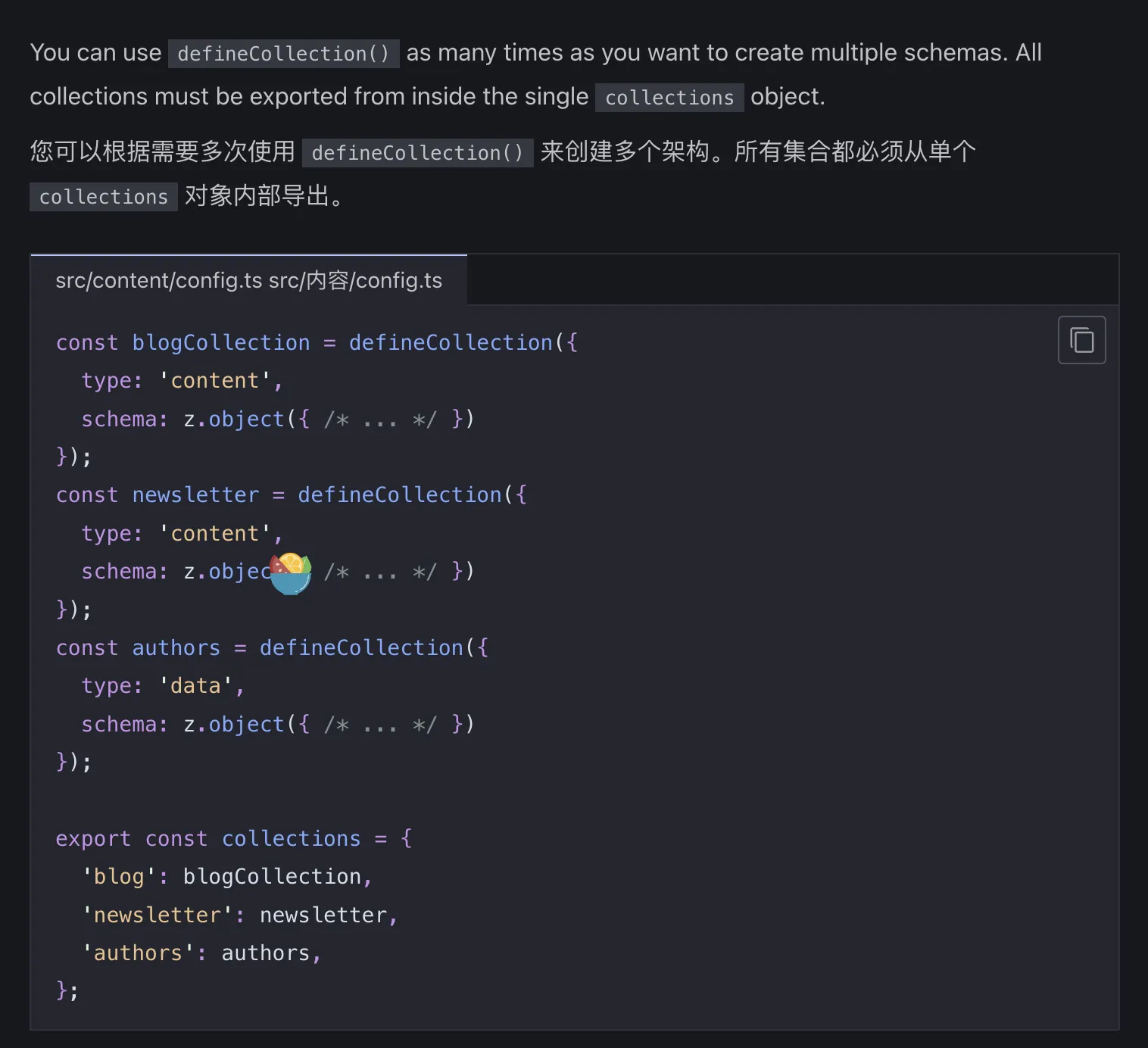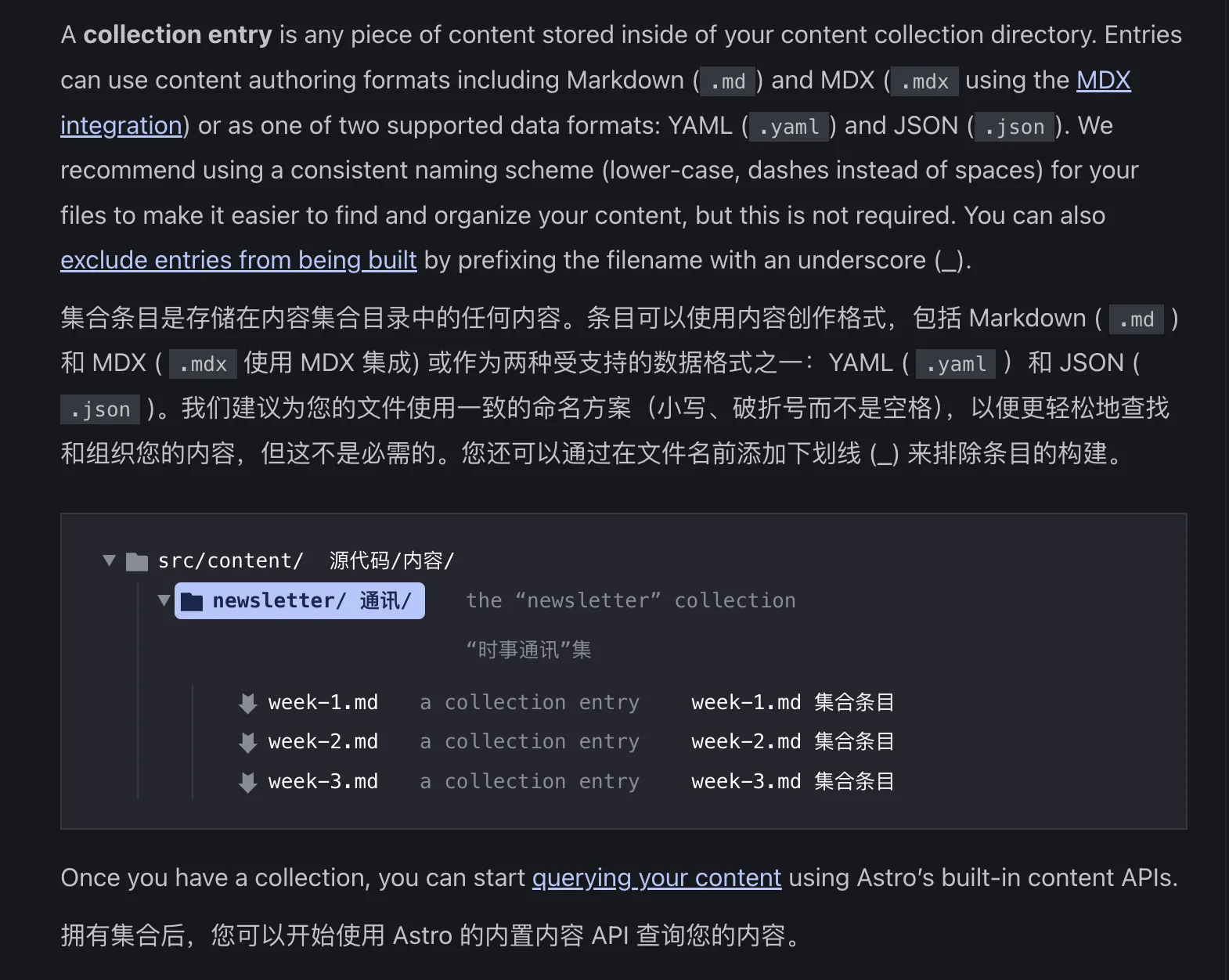 1、内容集合是在任何 Astro 项目中管理和创作内容的最佳方式。集合有助于组织文档、验证 frontmatter 并为所有内容提供自动 TypeScript 类型安全。