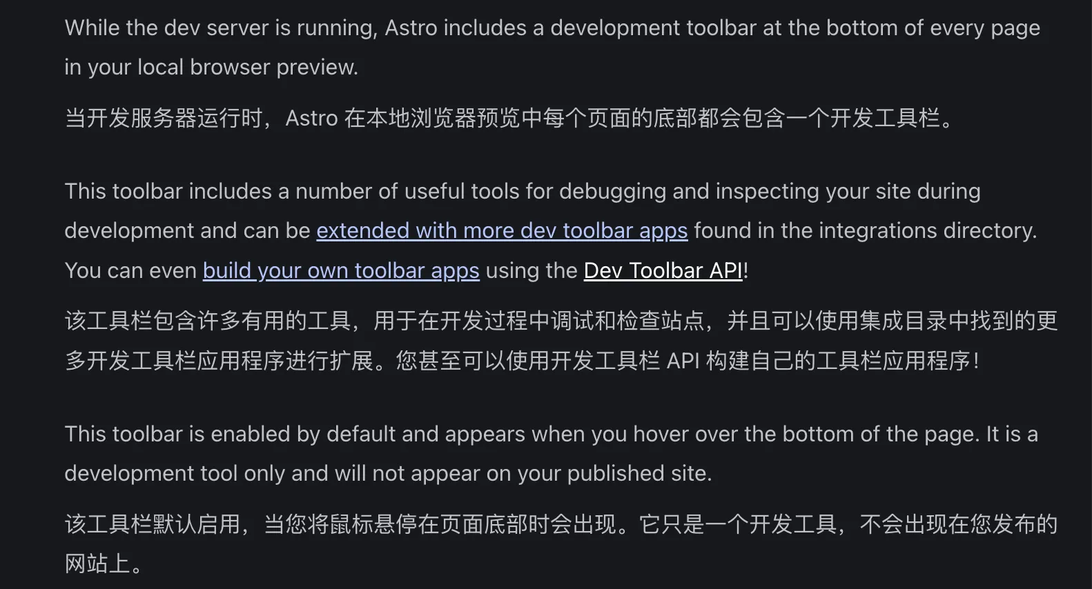 2、禁用开发者工具栏:要为项目中的每个人禁用开发工具栏,请在 Astro 配置文件中设置 devToolbar: false 。