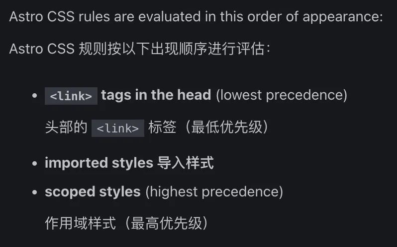 6、绕过 Astro 的内置 CSS 捆绑时要小心!样式不会自动包含在构建的输出中,您有责任确保引用的文件正确包含在最终页面输出中。