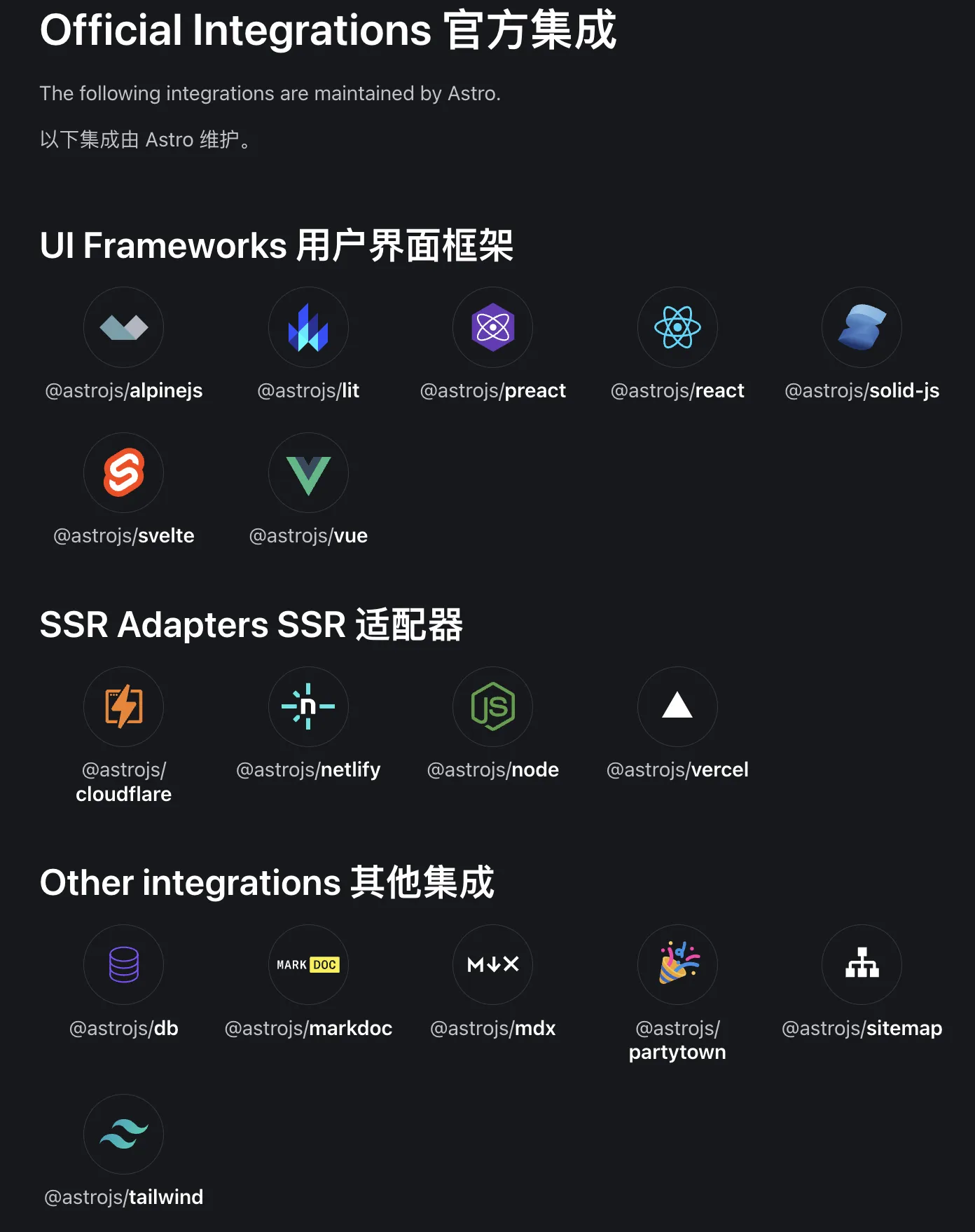 4、要一次性升级所有官方集成,请运行 @astrojs/upgrade 命令。这会将 Astro 和所有官方集成升级到最新版本。